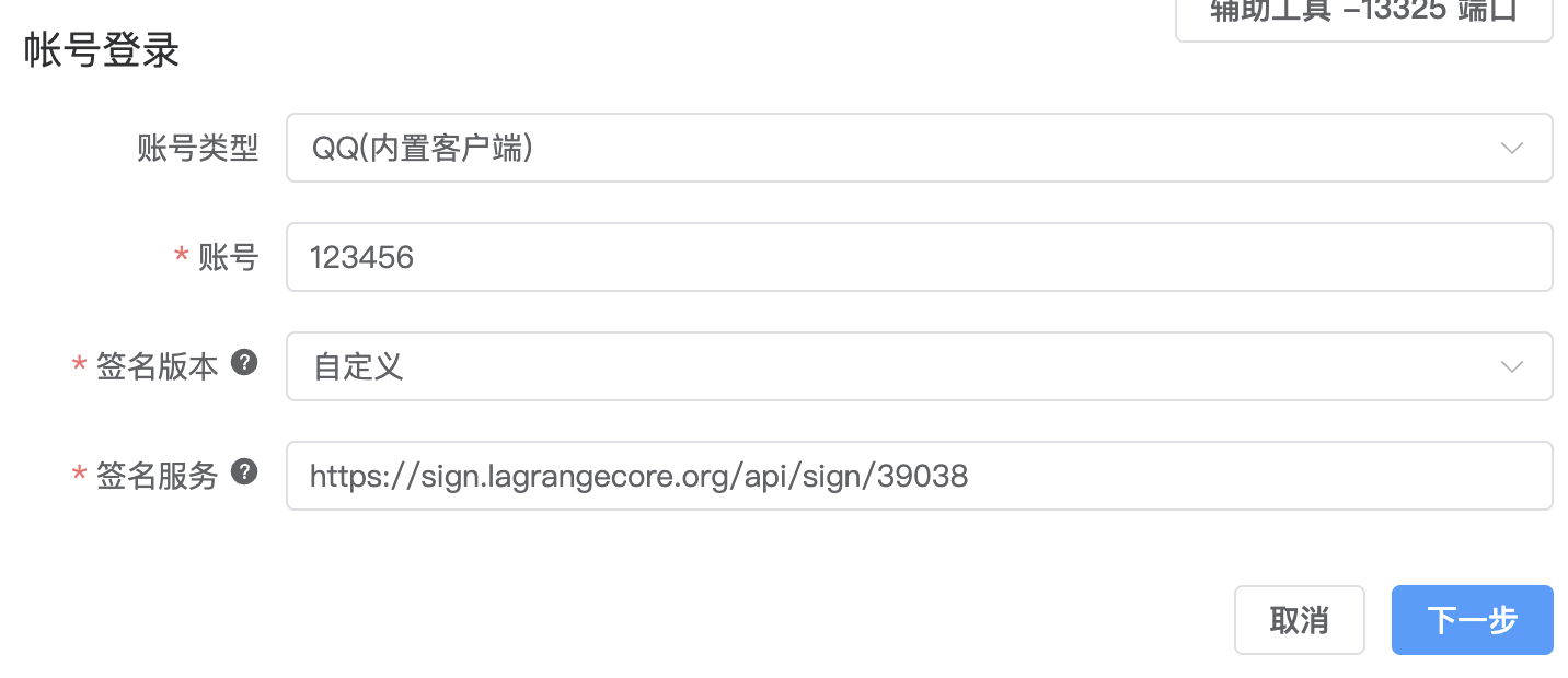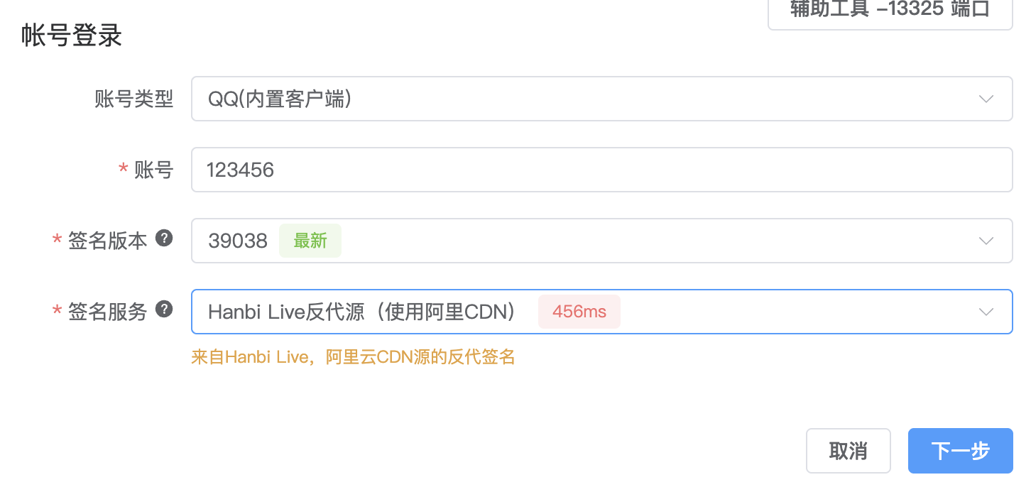 新建一个 QQ(内置客户端) 登录方式(注意,不得选择 QQ(内置gocq)),签名版本选择 39038 ,并选择延迟较低的 签名服务(不建议选择 海豹V2 )。